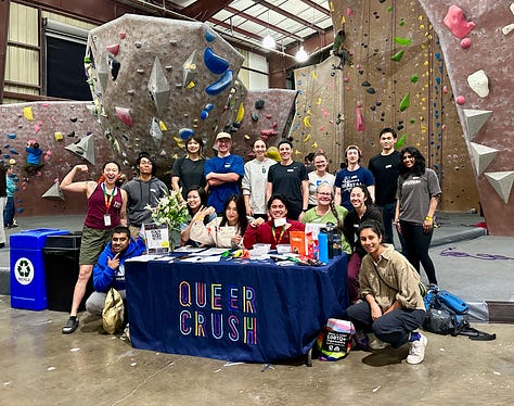Queer Crush is a queer climbing community creating safer spaces for people of diverse gender, romantic, and sexual orientations, where climbing becomes a path to healing, connection, and belonging.